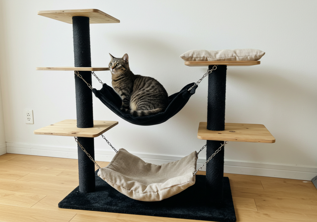 100均アイテムを活用して カスタマイズする方法 や、 手作りキットとの組み合わせ、さらには 爪とぎポールの交換方法 まで、キャットタワーをより便利に活用するアイデアを紹介していきます。