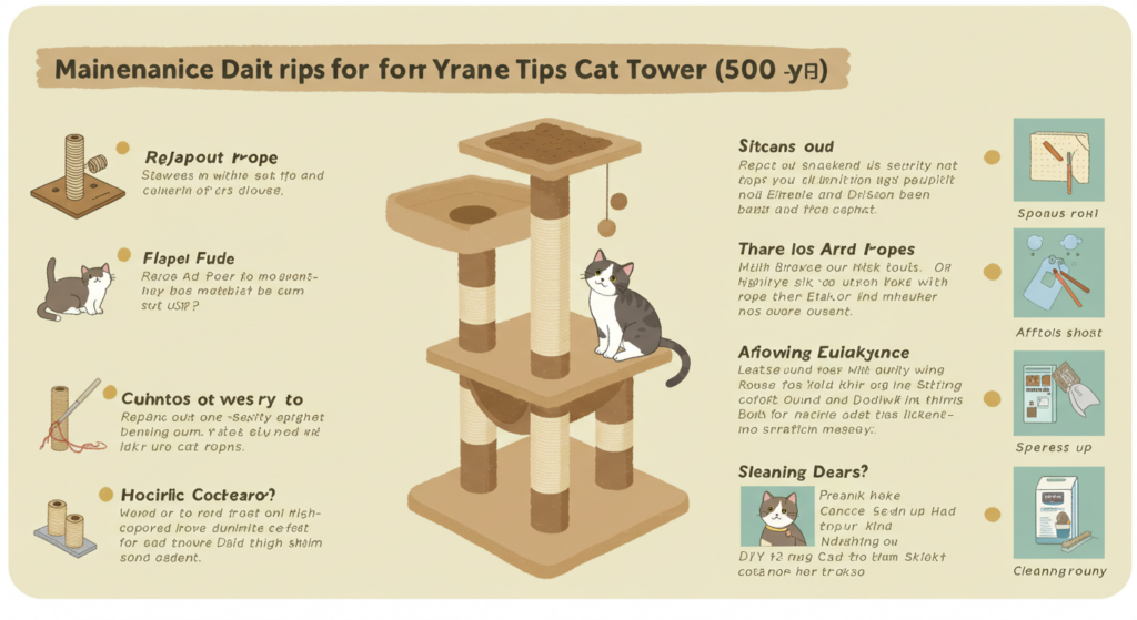 爪とぎポールや各部品の状態を定期的にチェックし、緩みや破損がないか確認しましょう。早めの対応がキャットタワーの寿命を延ばすことにつながります。